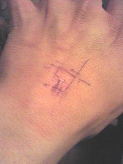 (やべぇ、何言ってやがるんだかわからなくなってきやがった。ここはメモしかねぇな。…しかしペンあるけど紙がねぇ…いいや、手のひらで。)