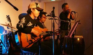 べケベンもいかに春を「木」の音で楽しめるか考えた結果、ガットギター(Kiso Suzuki Violin型番不明)、とC.P.NのTAKIのギター(Gretsch Axe)とシステムをごっそり、そしてこっそりと拝借して演奏させていただきました。そこに茶葉のヤマハ(FG赤ラベル)と源道寺のヤマハ(Motion-B)が合体して…とちょっと今までとは違った「和」の空間が出せれば…というアプローチでございました。珍しく「機材」のお話でした。チャンチャン♪っと。