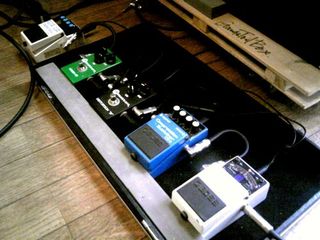 本体→チューナー→コンプレッサー→ディストーション(極薄歪)→オーバードライブ(たっぷりサスティン)→デジタルディレイ→真空管プリアンプ→デジタルアンプ