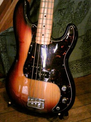 コレは「ベース」っていう低音楽器です。弦が4本のギター。